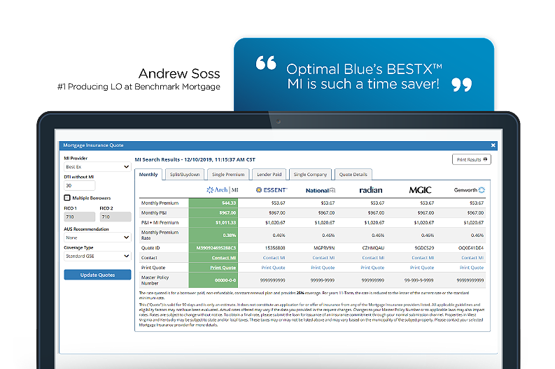 Exceed borrower expectations by offering the lowest mortgage insurance premiums across all six MI providers. With BESTX MI, gain scenario-specific quotes, side-by-side comparisons, and the best pricing alternatives tailored to each client.